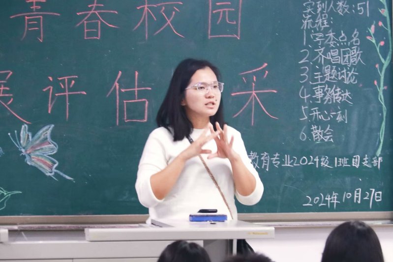 (通讯员 张徐/文 肖智豪/图)为持续推进优良学风建设,提高学生的规划意识,培养他们的规划能力,10月27日下午18时,教师教育学院于正心楼组织2024级学生观看《青春的方向——首届全国大学生职业规划大赛风采展示》视频,2024级政治辅导员吴敏参与此活动。