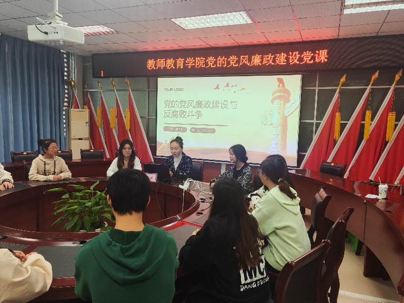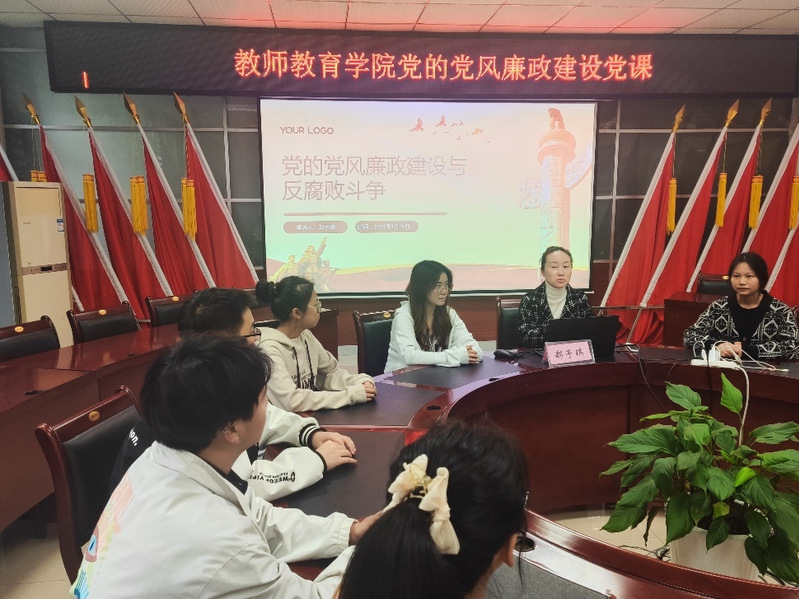 (通讯员熊婷玉)2024年3月11日,教师教育学院党委学生第一党支部于崇仁楼408开展了以“党的党风廉政建设与反腐败斗争”为主题的党课。此次会议由党支部书记郝予琪同志主持,学生第一党支部党员参加。