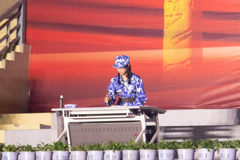 “在茫茫的人海里,我是哪一个;在奔腾的浪花里,我是哪一朵……”当《祖国不会忘记》的前奏响起,我院新生迅速切换状态,以饱满的情感投入演唱。为更好诠释歌曲内涵,同学们创新加入书法展示环节——一名同学现场挥毫泼墨,笔走龙蛇间写下“强国有我”遒劲大字,将专业特色与红色主题深度融合。歌声时而悠扬婉转,诉说对无名英雄的敬意;时而激昂高亢,传递新时代青年的担当,书法与歌声的碰撞将现场气氛推向高潮。
