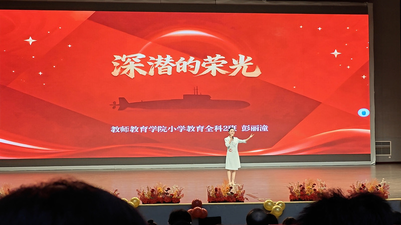 展风采环节,新生演讲比赛成为亮点。我院彭丽潼同学以《深潜的荣光》为题,讲述心中英模故事,凭借深刻的立意与真挚的表达斩获我校新生演讲比赛第一名,展现了新生昂扬的精神风貌。立志向环节推出“致四年后的一封信”活动,新生以笔墨寄托理想,在书写中明确逐梦方向,立下“强国有我”的青春誓言。