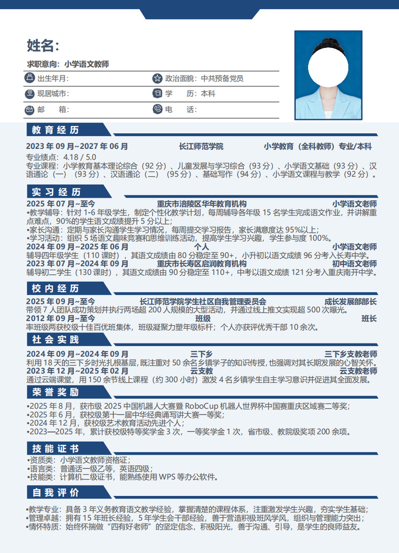 一份份简历不仅是对过往学习成果的总结,更是同学们对自身教师职业身份的一次深度审视与初步建构。在制作过程中,大家不仅锻炼了信息提炼与表达的能力,也更清晰地认识到自身的优势与未来的发展定位。