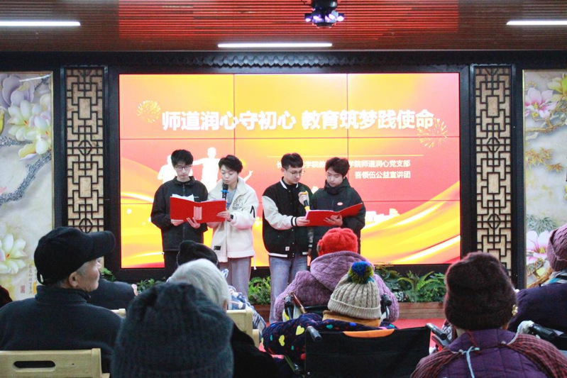文艺表演环节,学子们带来声情并茂的朗诵,“学高为师,身正为范”的誓言直击人心,老人们聆听专注,神情欣慰。