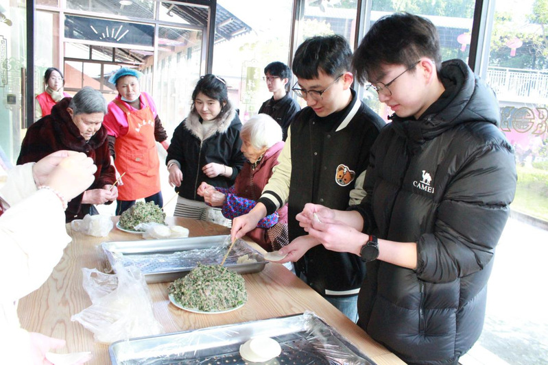 随后,大家围坐在一起动手包饺子,学子们虚心请教老人的拿手手法,老人们耐心指导,揉面、擀皮、包馅的过程中笑语不断,老少协作,满满的烟火气与幸福感。